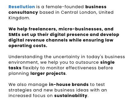 We primarily operate remotely from our location in London, but are flexible in arranging in-person meetings within Europe. Resellution is open to work with small businesses and freelancers internationally, across borders.*
